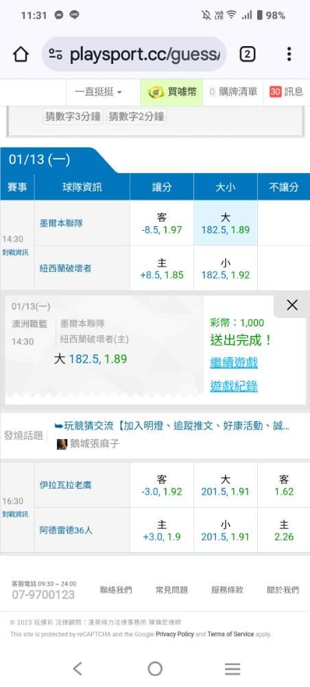 澳洲職籃 >> 國際連贏3天8過7近況很棒邀請朋友們1430發起攻擊領錢爽歪歪!