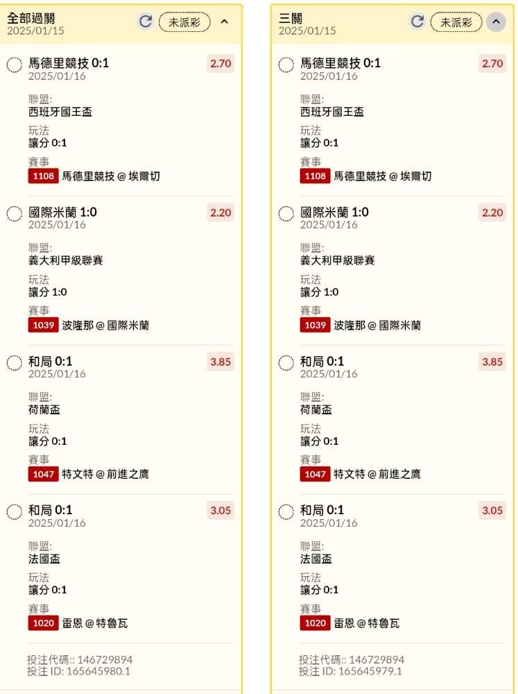 >> 半夜場讓分串關分享2單試單(4場賽事)