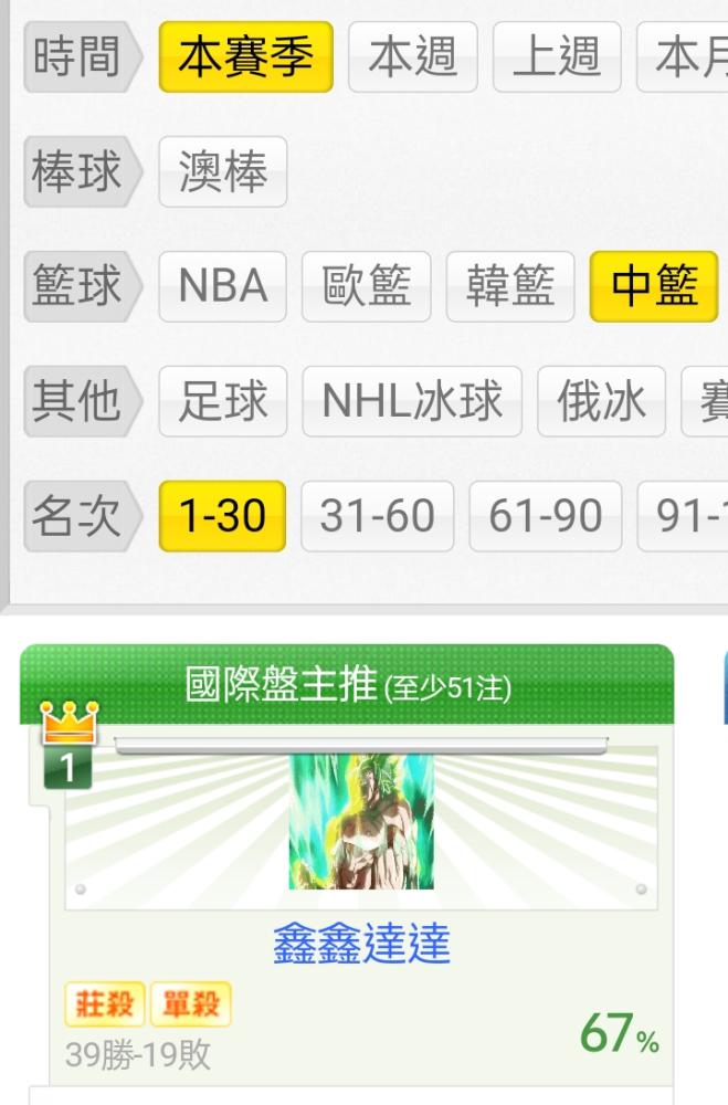 中國職籃 >> ⭐[主推連過6天][本賽季主推勝率全站第一][信心主推99%貓場50倍注]主推非常有信心!⭐