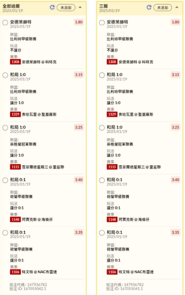 >> 晚場讓分串5關試單小玩分享2單(不同讓分組合)