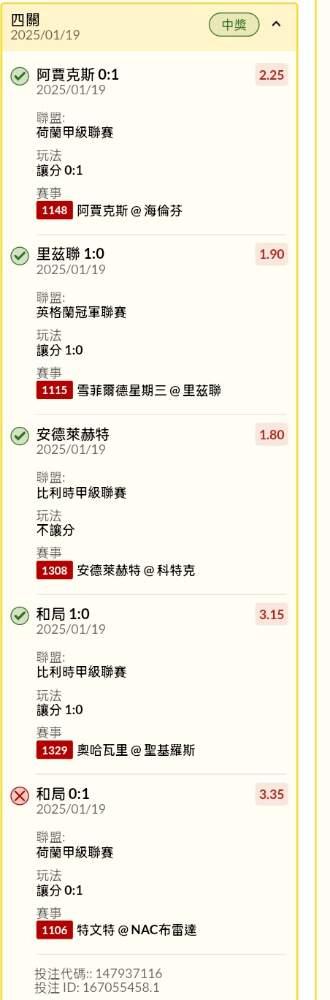 >> 足球晚場讓分不讓分串關5過4