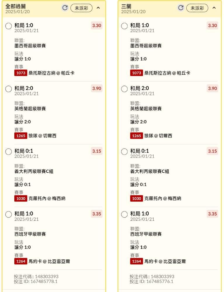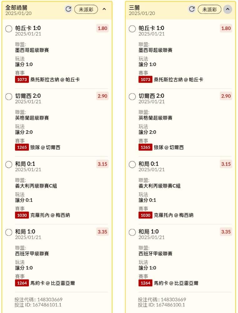 >> 半夜場讓分串關分享2單試單(4場賽事)