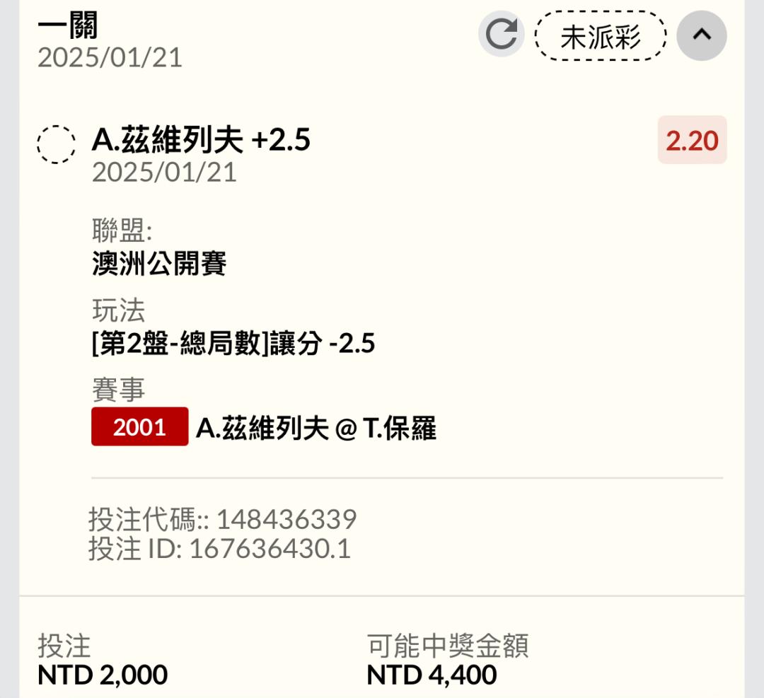 網球 >> A.茲維列夫 +2.5