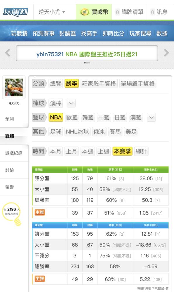 >> 國際盤讓分近5日14過10,國際盤本賽季讓分盤總勝率第3名,國際盤本賽季總勝率第9名!