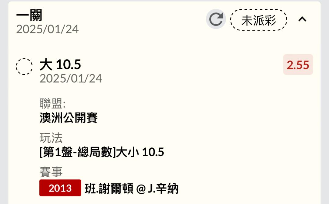 >> 班.謝爾頓 @ J.辛納 第一局大10.5
