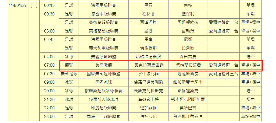 NBA >> 1/27 NBA單場分享 雷霆@拓荒