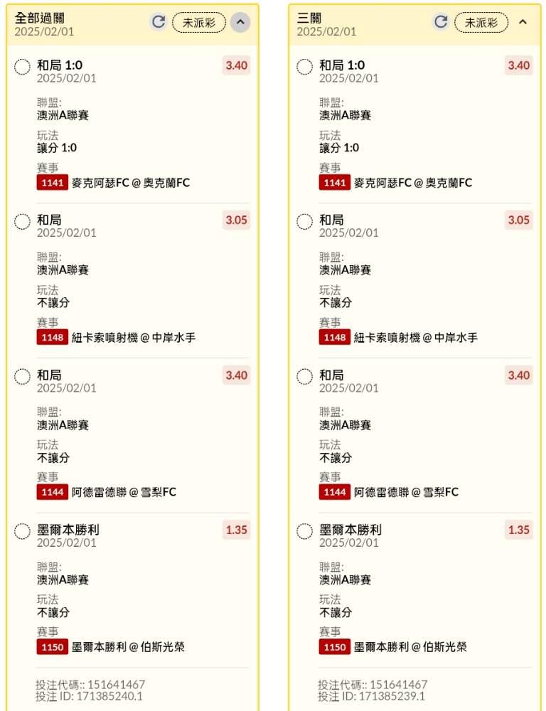 >> 澳洲場讓分串關分享2單(4場賽事)