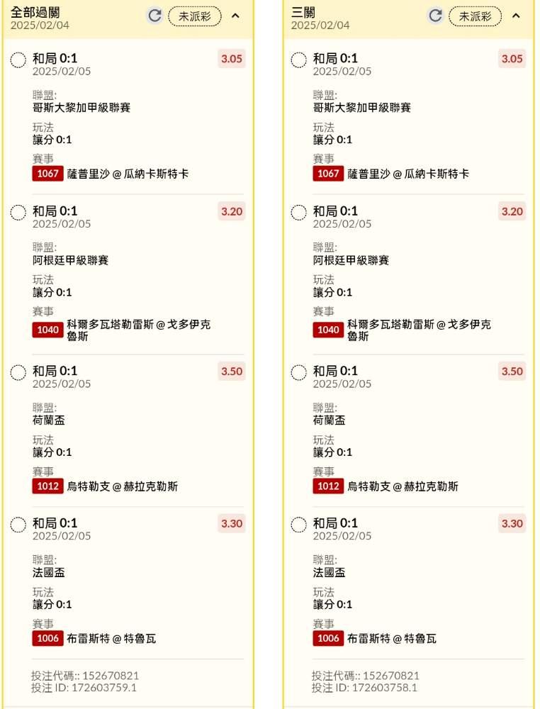 >> 半夜早場讓分串關分享2單