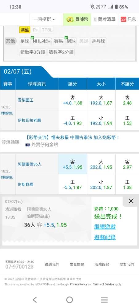 澳洲職籃 >> 連續二天雙盤4/4今天再創佳績喜歡跟上一起殺豬領錢爽歪歪!