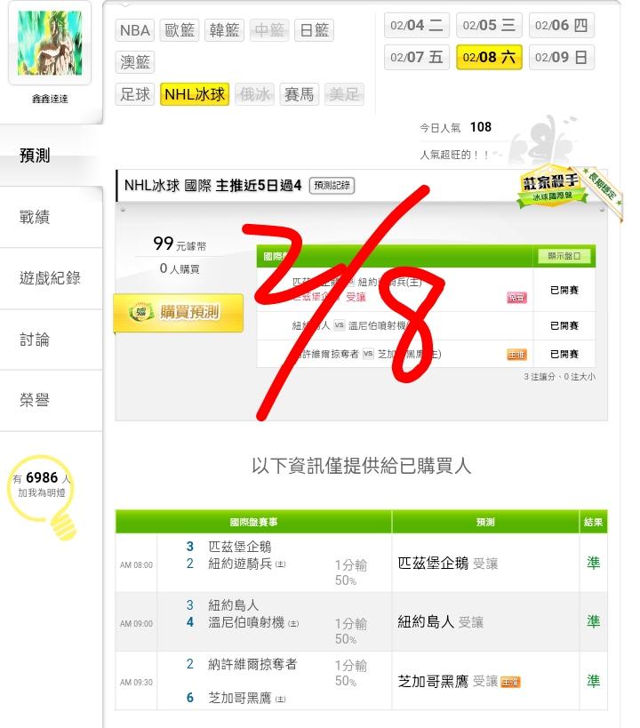 NHL冰球 >> ⭐救紅看過來,今日3過3全過,NHL冰球國際主推近5日過4,信心主推99%貓場10注,贏錢跟上⭐