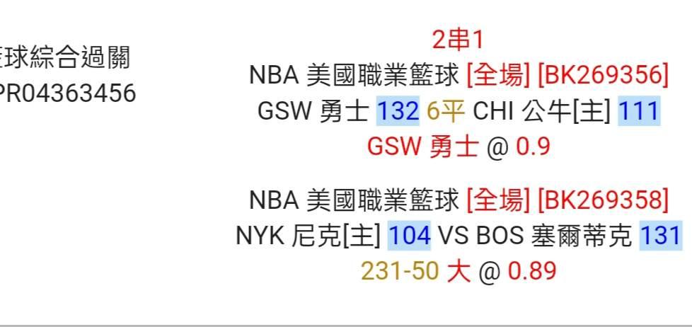 NBA >> 分享一注 二串一