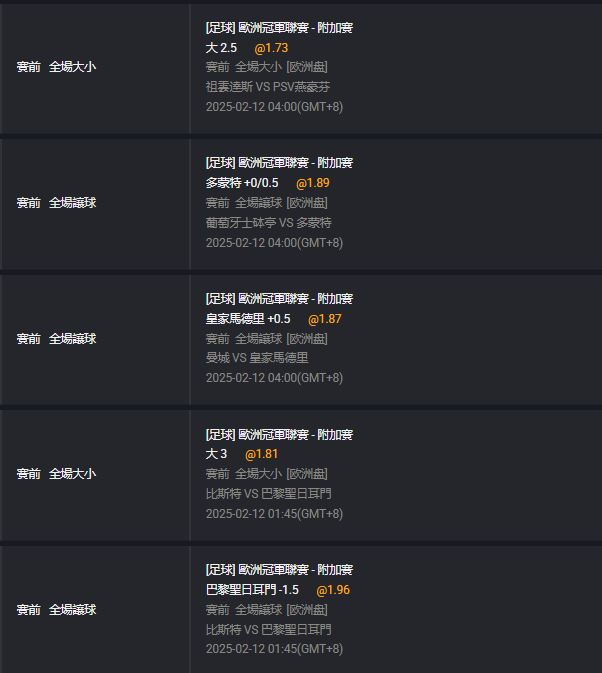 足球 >> 02/12 足球初盤推薦 歐冠