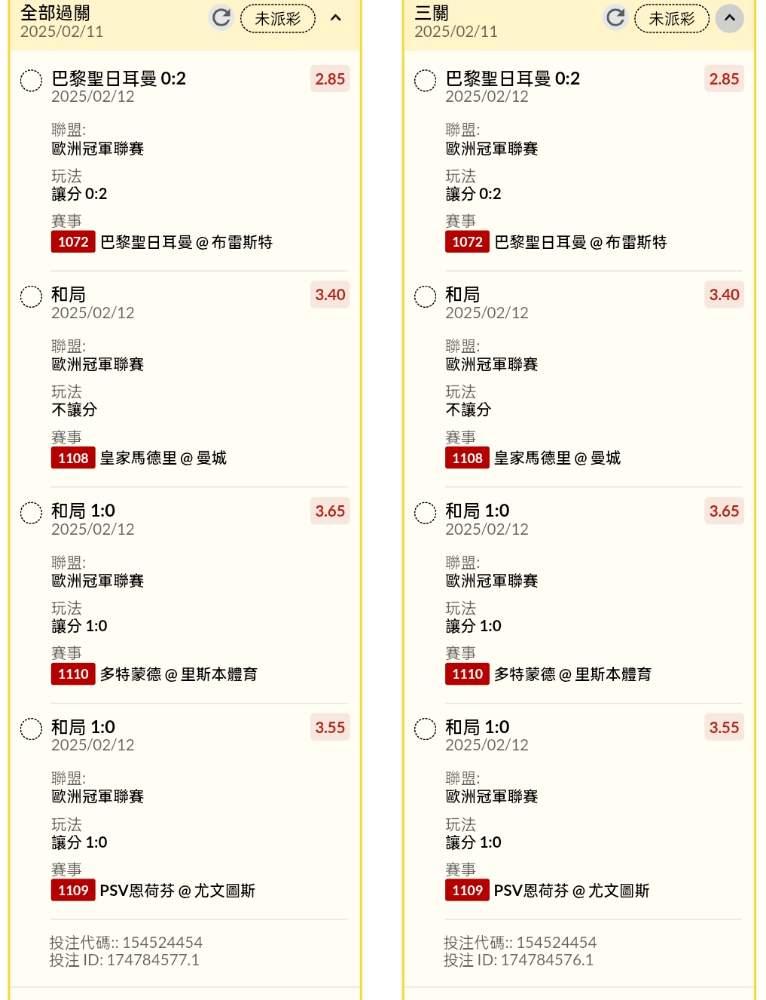 >> 半夜場讓分、和局串關分享4單