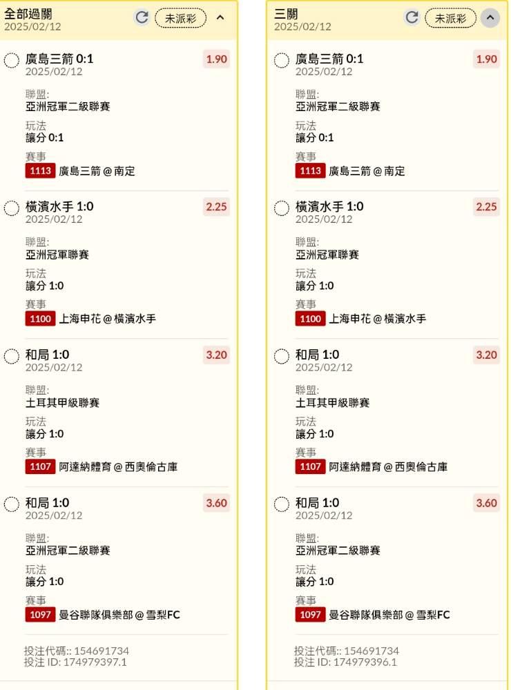 >> 午晚場讓分串關分享4單小玩試單(5場賽事)