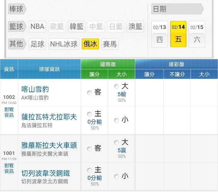俄羅斯冰球 >> ⭐⭐⭐⭐⭐⭐~~~~~~~2/14俄冰盤口分享~~~~~~~~⭐⭐⭐⭐⭐⭐