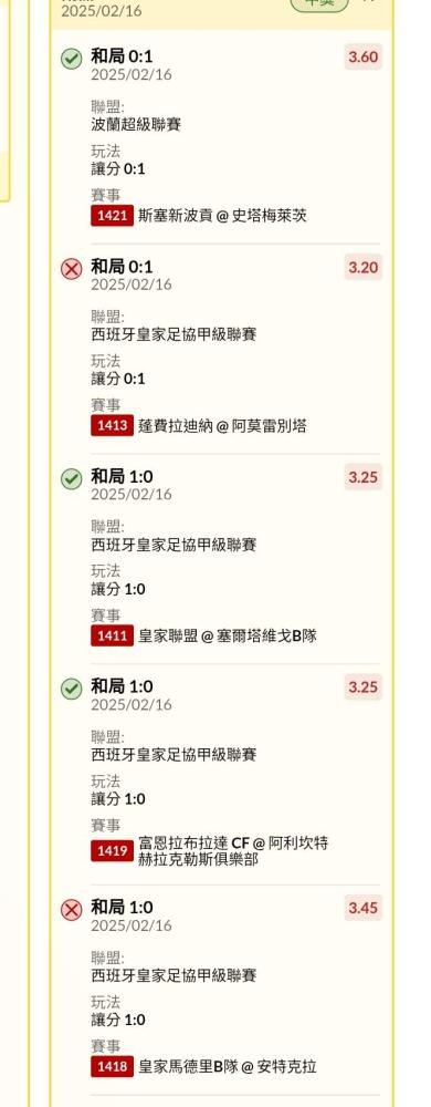 >> 2/16~足球晚場串關