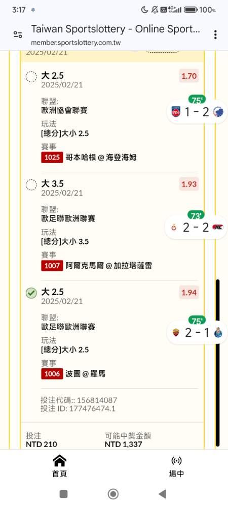 你串的這三關拿來串4-5球應該也有機率過關 恭喜