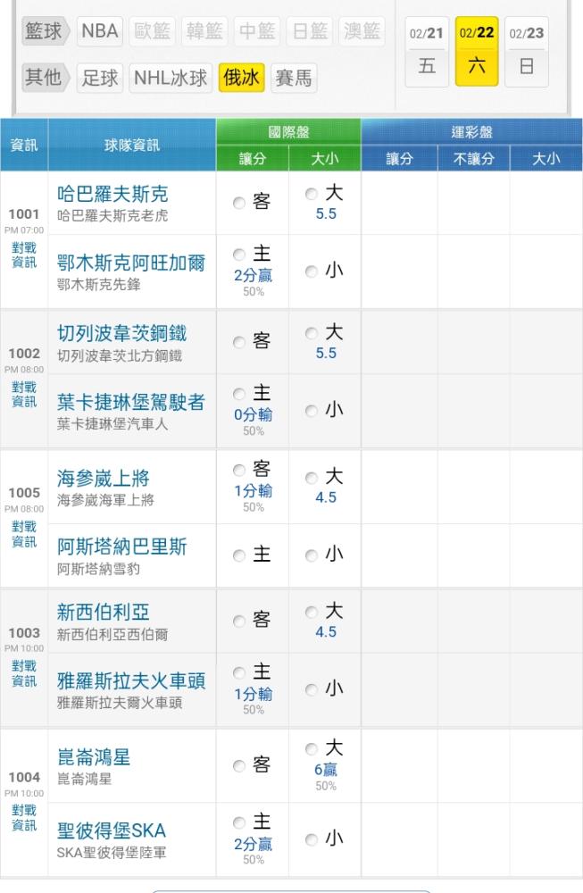 俄羅斯冰球 >> ⭐⭐⭐⭐~~~~2/22俄冰盤口~~~~⭐⭐⭐⭐