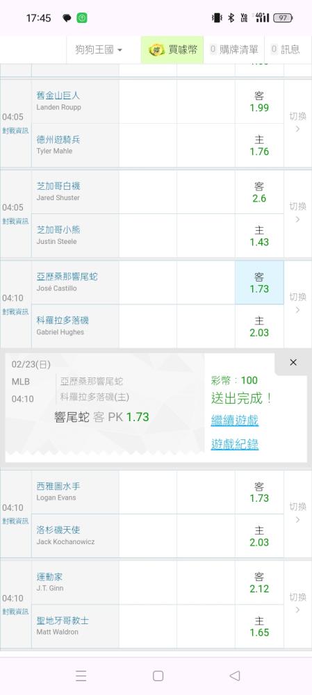 MLB >> MLB春訓熱身(巨人vs遊騎兵)狗狗主推總計高勝率,跟上狗狗咬莊家🥳🥳🥳