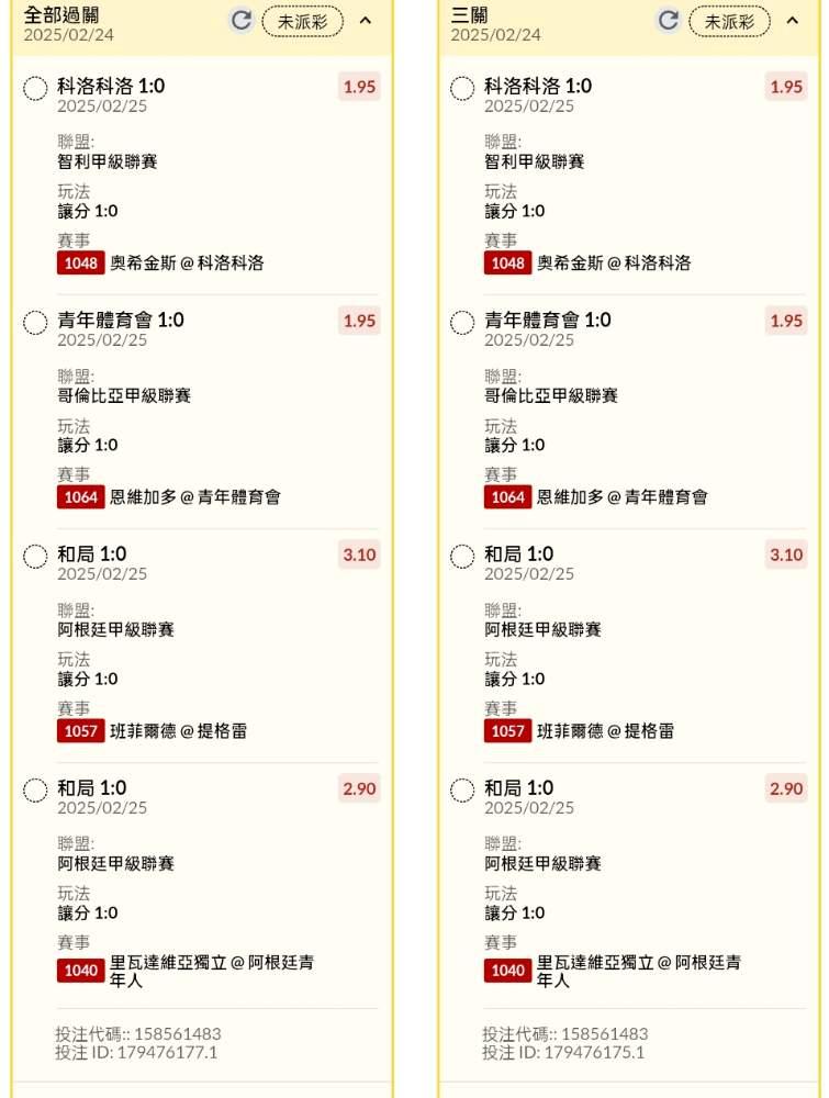 >> 半夜早場讓分串關分享小玩4單試單(8場賽事不同組合)
