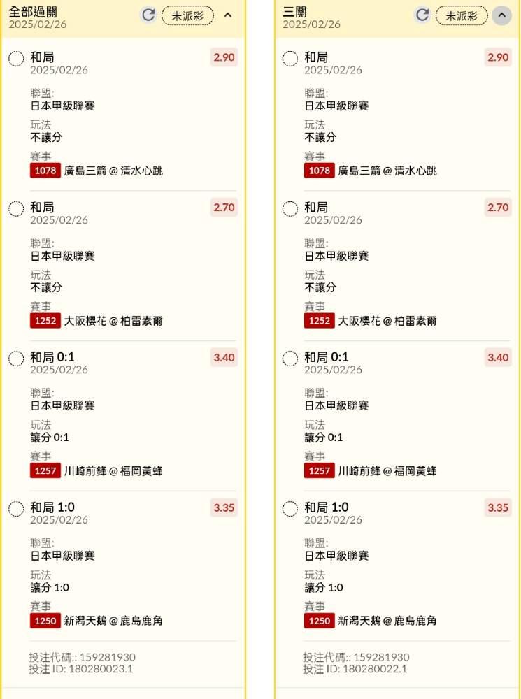 足球 >> 日本晚場讓分、和局串關分享小玩4單試單(6場賽事)