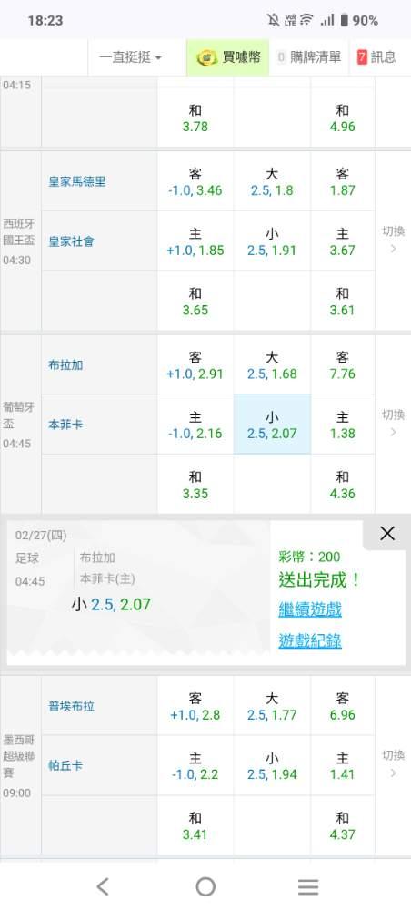 足球 >> 連贏二天7/7明天3注信心高一起上車殺豬頭領錢吧!