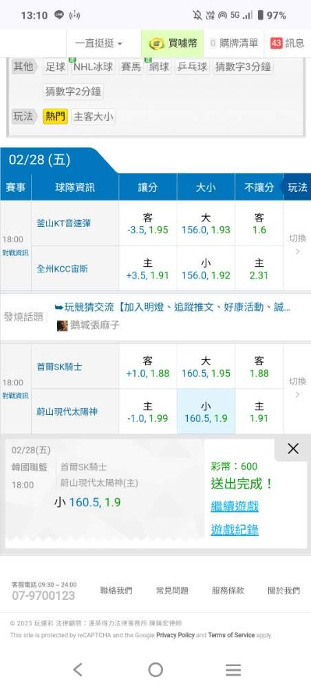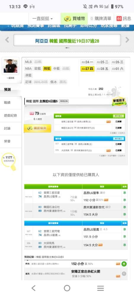 韓國職籃 >> 2/27雙盤7過7殺豬爽歪歪今天就來上車繼續殺豬頭領錢爽歪歪!