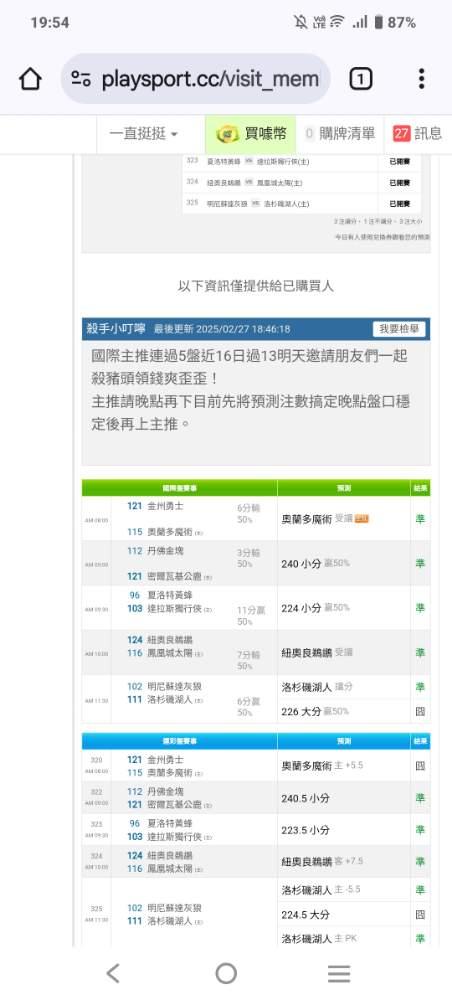 NBA >> 國際主推連過6盤近17日過14盤2/28國際6/5直接嗨翻領錢爽歪歪!