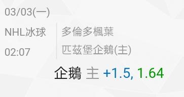 >> 3/3 NHL 冰球 [AM 06:00 卡加利火焰vs卡羅萊納颶風(主)]
