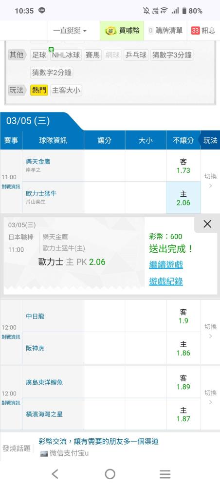 日本職棒 >> 連贏二天5過4今天特價79元邀請朋友們上車一起殺豬頭領錢爽歪歪!