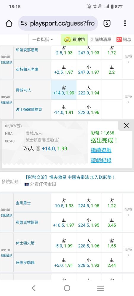 NBA >> 國際主推近12日過10目前連過2盤明天繼續殺豬抱歉特價使用完畢上車領錢吧!