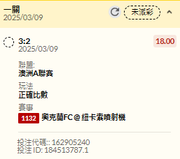 足球 >> 14:00 澳甲 單場 🎉🎊