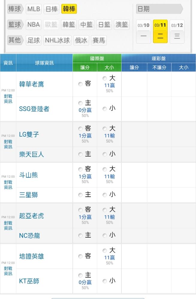 韓國職棒 >> ⭐⭐⭐⭐~~~~3/11韓職kbo熱身賽盤口~~~~⭐⭐⭐⭐⭐