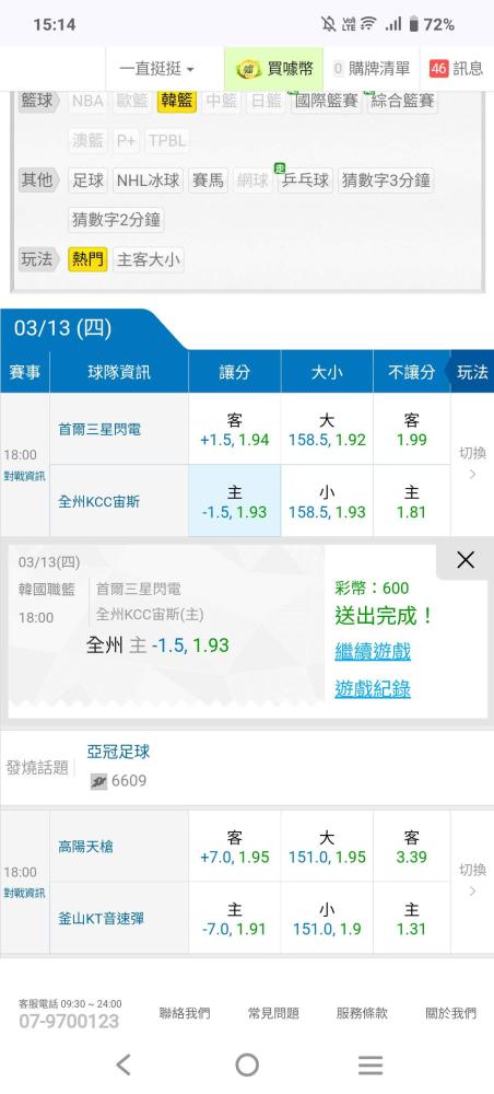 韓國職籃 >> 國際主推連過2日3/12雙盤4過4今天上車繼續一起殺豬領錢爽歪歪!