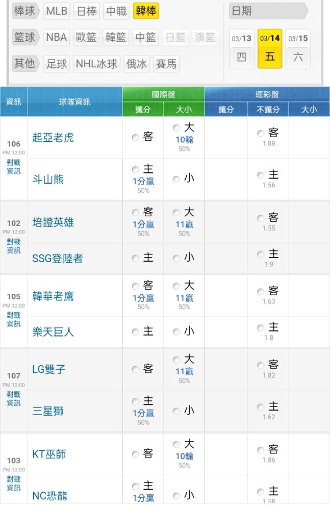 韓國職棒 >> ⭐⭐~~3/14韓職kbo盤口分享~~⭐⭐