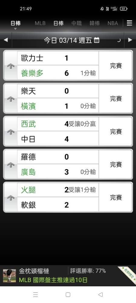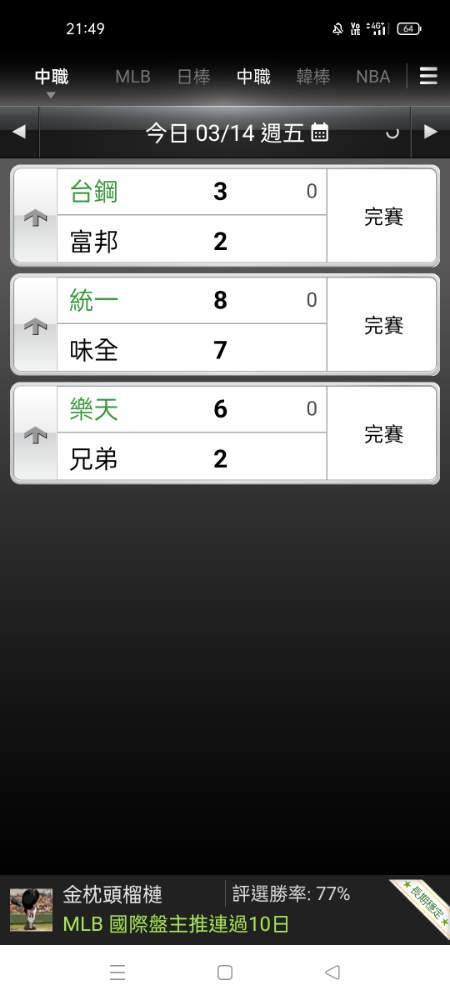 MLB >> 主推連過五天,明日主推挑戰六連龍