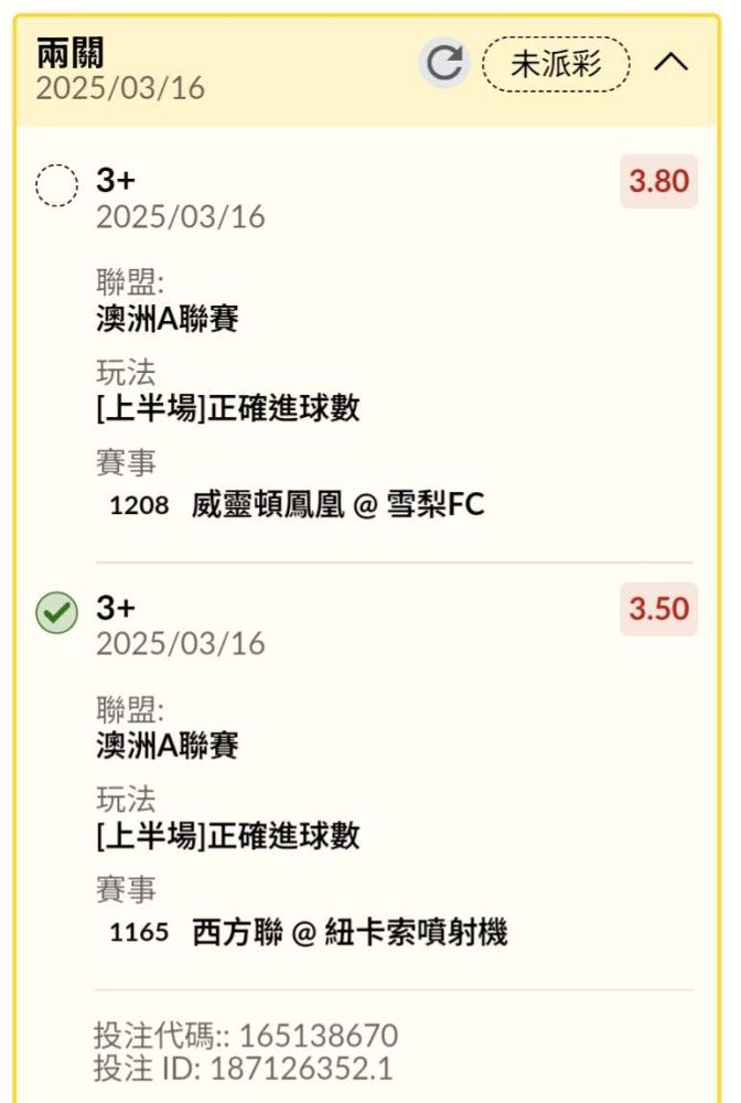 >> 澳洲上半3+過關 還有串一單