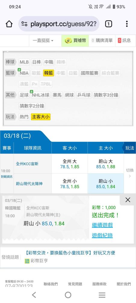 韓國職籃 >> 今天一樣續拼主推一注絕殺豬頭領錢爽歪歪喜歡跟上!