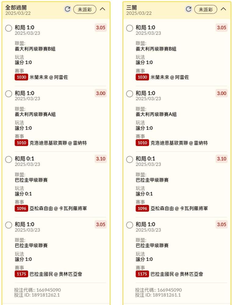 >> 半夜清晨讓分試單串關分享1單