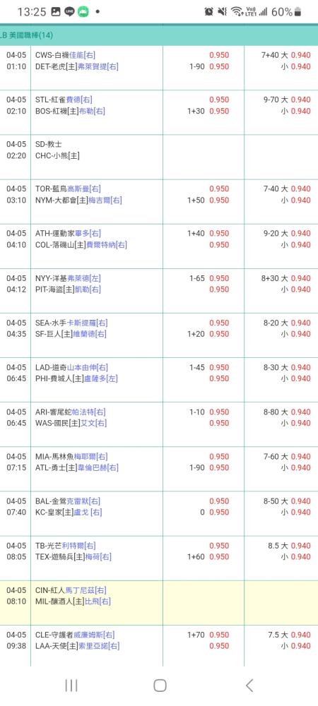 >> 04/05 MLB 初盤