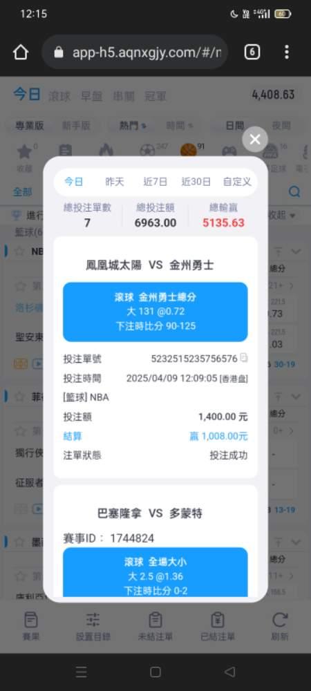 >> 後面下半場都玩勇士 然後+別場 都賠回來了