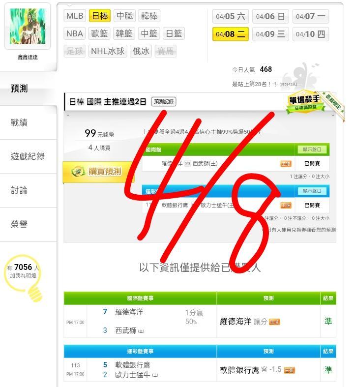 日本職棒 >> ⭐⭐救紅看過來,信心主推場,拼4過4全轟,主推非常有信心,歡迎參考合牌⭐⭐