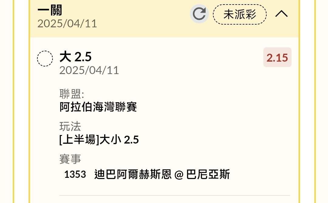 >> 阿拉伯場中,上半2.5大