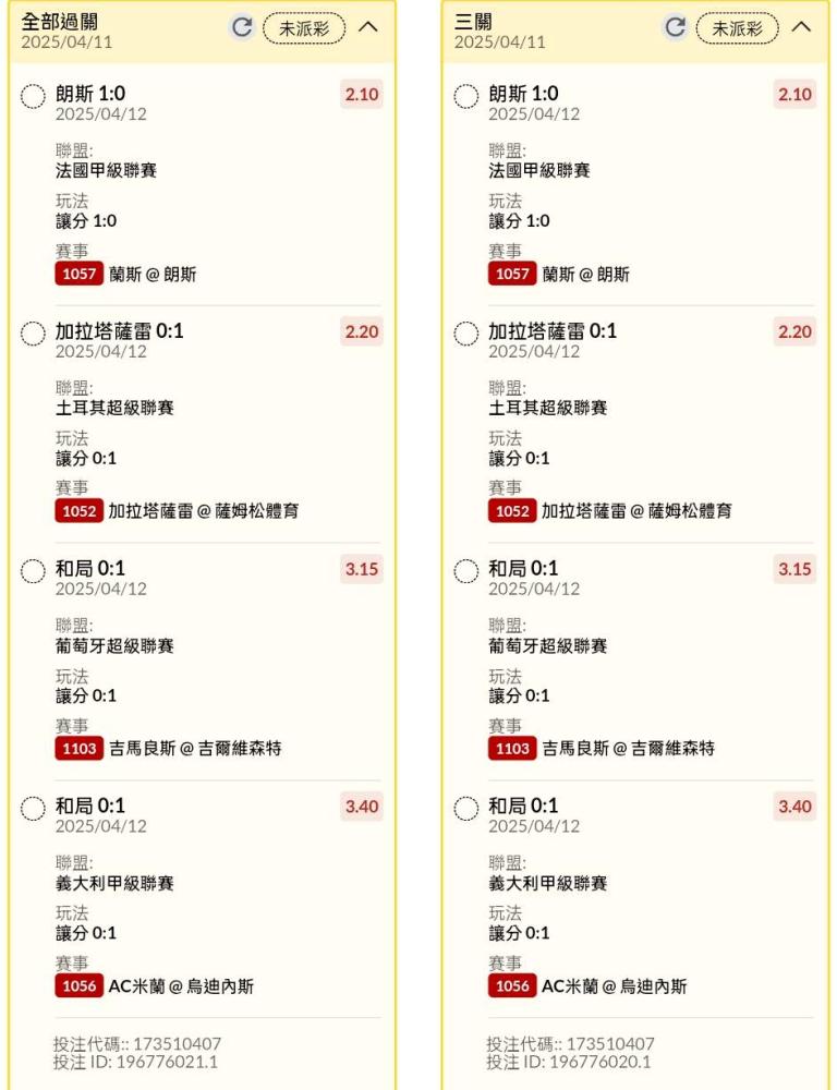 >> 半夜場讓分串關分享2單(4場賽事不同讓分組合)