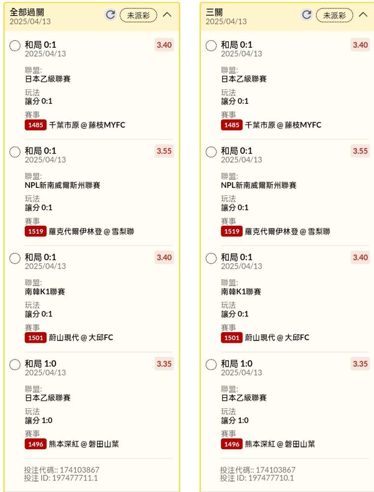 >> 午場讓分、和局串關分享小玩5單