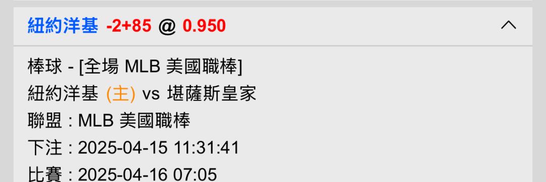 MLB >> 4/16⚾️ 皇家vs洋基⚾️