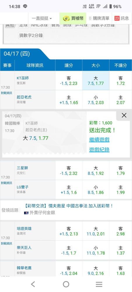 韓國職棒 >> 國際主推連過5天今天一樣二注絕殺豬頭邀請朋友們一起上車領錢吧!