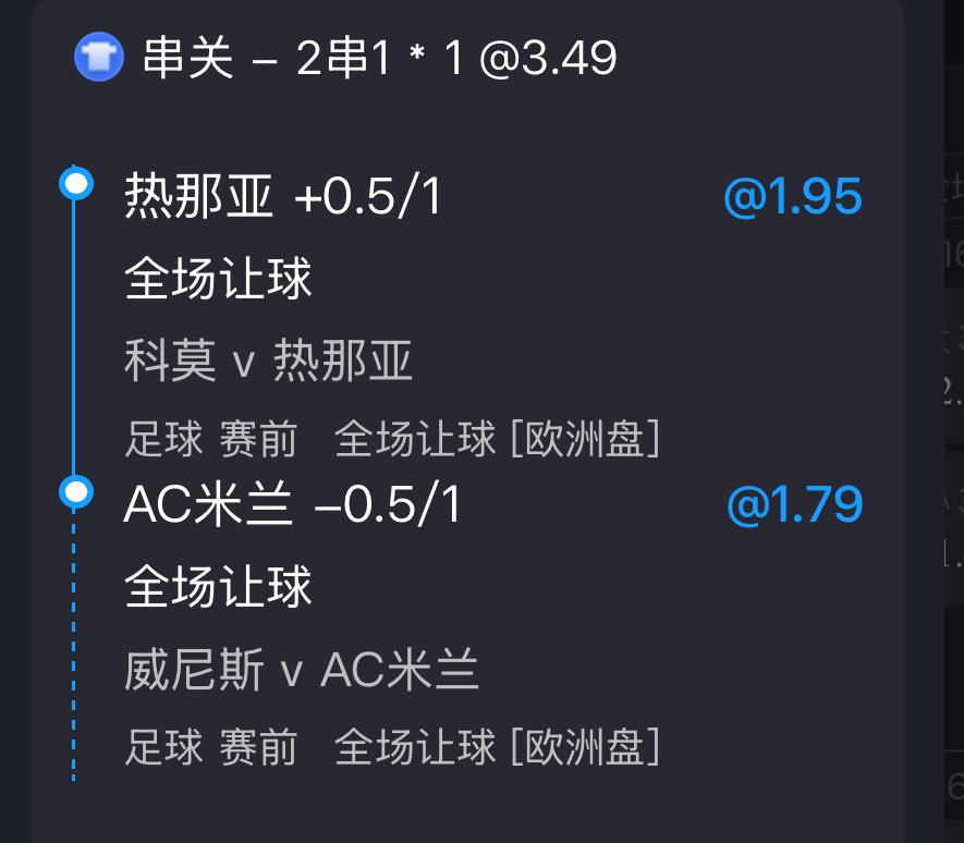 AC米蘭 大2.75 讓盤等-0.5/1