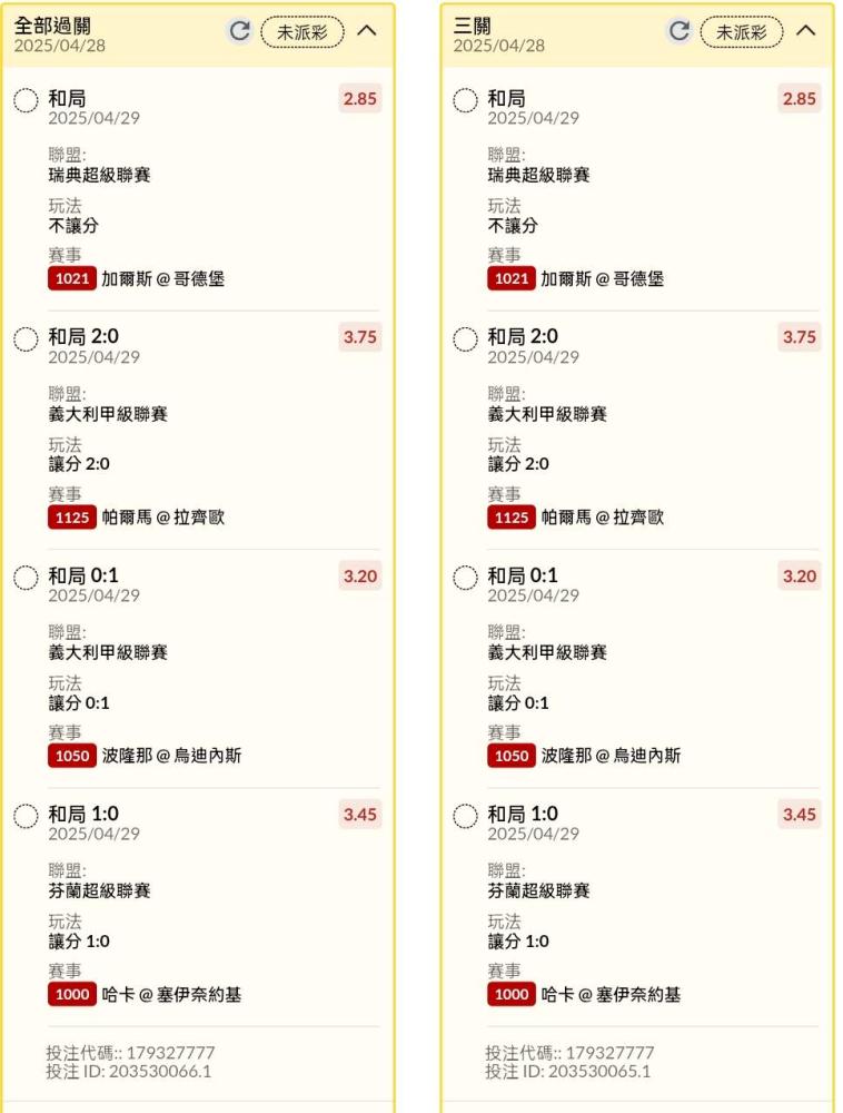 >> 半夜讓分串關分享2單試單(4場賽事)