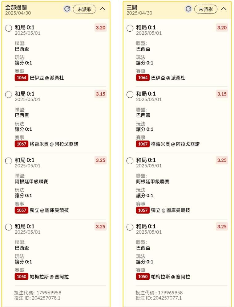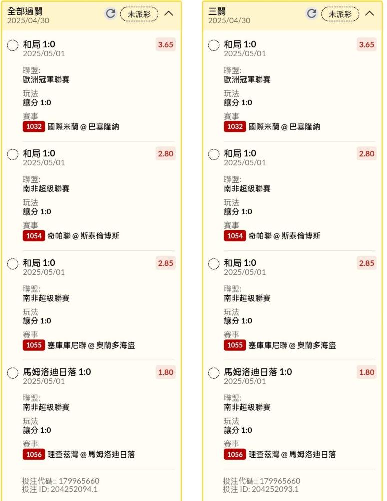 >> 半夜早場讓分串關分享小玩3單試單(8場賽事)